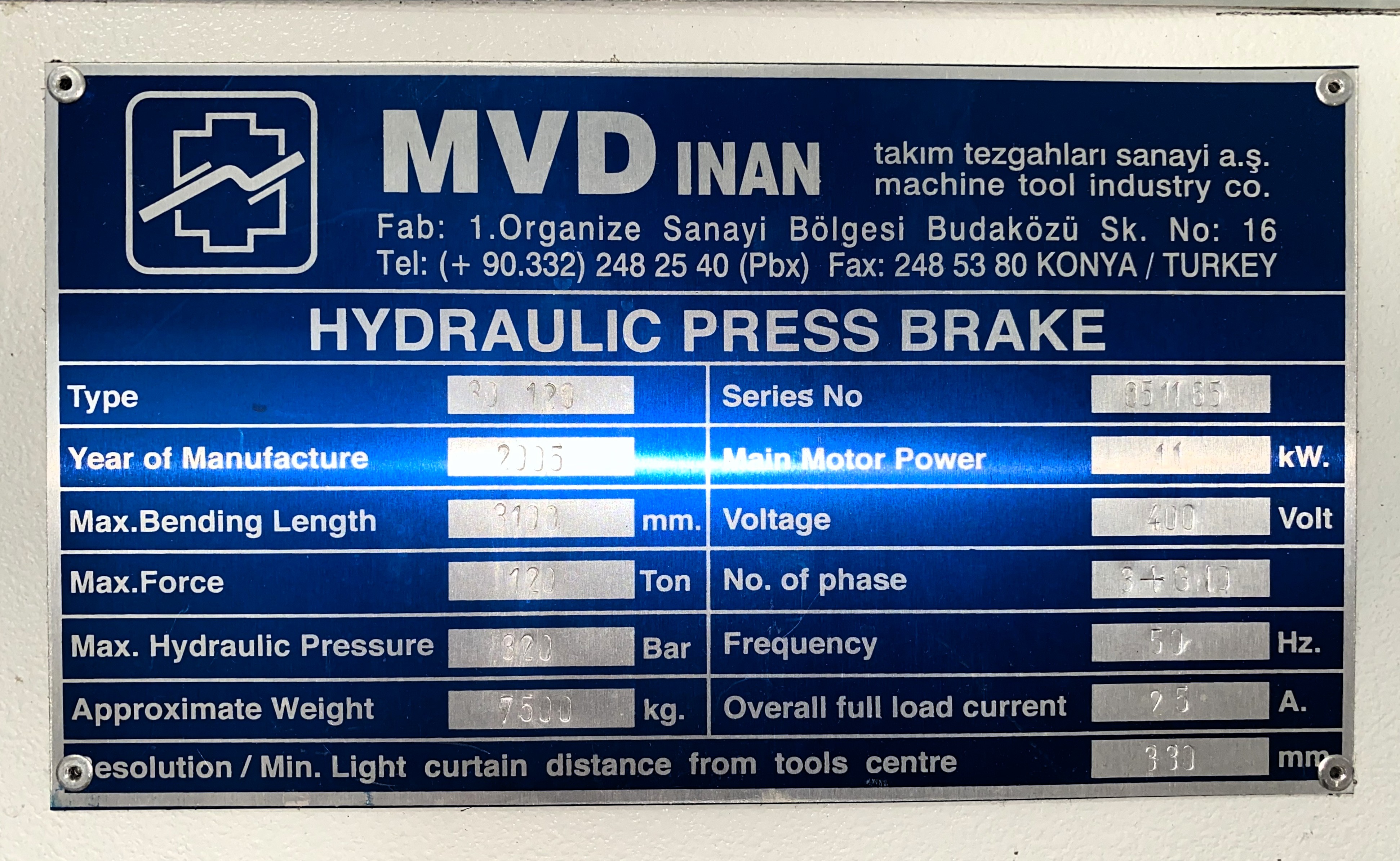 Press Brake MVD 3100 x 120 ton