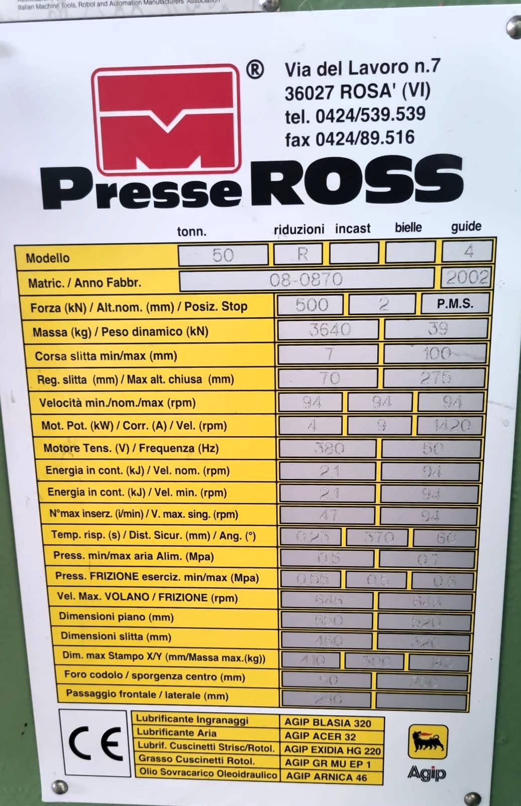Pressa Ross 50 ton, anno 2002 CE